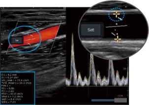 Esta función facilita el flujo de trabajo en las mediciones de los vasos sanguíneos y del volumen del flujo sanguíneo.