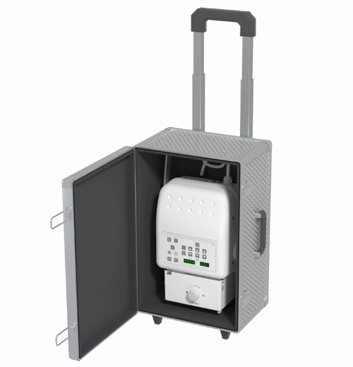 El equipo de rayos X portátil se puede trasladar a cualquier lugar fácilmente con la maleta de transporte.